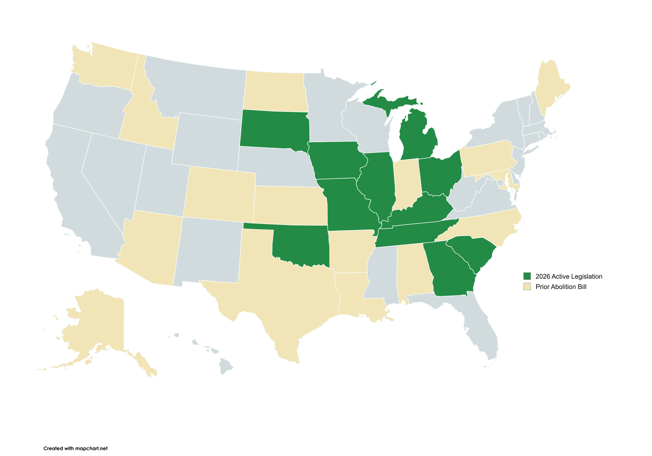 The Foundation to Abolish Abortion has been privileged to be involved with much of the legislation and public policy efforts across the country to abolish abortion. States with Active Legislation Georgia Illinois Iowa Kentucky Michigan Missouri Ohio Oklahoma South Carolina South Dakota Tennessee Other States Alabama Alaska Arizona Arkansas Colorado Idaho Indiana Kansas Louisiana Maine Maryland North Carolina North Dakota Pennsylvania Texas Washington